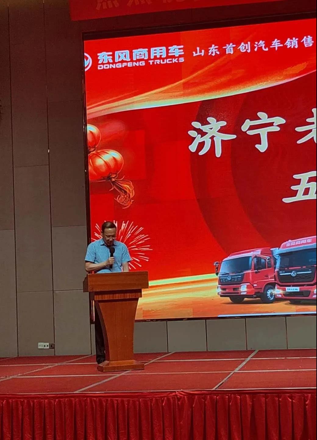 慶典上,濟南市濟寧商會副會長朱濱、東風(fēng)商用車負責人分別上臺講話,表達了對協(xié)會工作的肯定和未來的美好祝福。