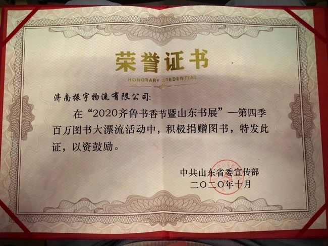 振宇物流此次積極主動(dòng)參與“2020年齊魯書香節(jié)暨山東書展-第四季百萬(wàn)圖書大漂流”活動(dòng),只為讓每一位鄉(xiāng)村孩子都能讀上一本完好的書,努力承擔(dān)書籍裝卸及運(yùn)輸,將這些書籍送往東明縣沙窩鎮(zhèn)姜屯小學(xué)。