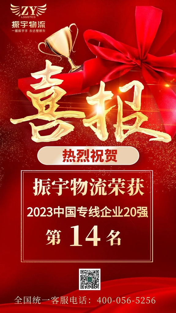 熱烈祝賀振宇物流榮獲2023中國(guó)專線企業(yè)20強(qiáng)第14名