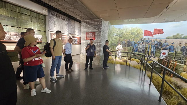 最后,在臺(tái)兒莊大戰(zhàn)紀(jì)念館里,大家參觀(guān)了館內(nèi)陳列的臺(tái)兒莊大戰(zhàn)時(shí)的資料文物,還觀(guān)看了珍貴的影像紀(jì)錄片,愛(ài)國(guó)將士沖鋒的呼喊猶在耳畔,驚魂奪魄的場(chǎng)面似在眼前??谷障攘覀兤シ蛴胸?zé)的家國(guó)情懷、寧死不屈的民族氣節(jié)、血戰(zhàn)到底的英雄氣概、堅(jiān)韌不拔的必勝信念使全體黨員深受震撼。