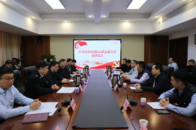 12月20日,中共濟(jì)南市國際公路運(yùn)輸支部舉行揭牌儀式,中國道路運(yùn)輸協(xié)會(huì)副秘書長高兮,市口岸物流辦黨組成員、副主任夏慶,泉城海關(guān)二級(jí)高級(jí)主辦肖永琪,振宇物流集團(tuán)董事長張憲振、市國際公路運(yùn)輸支部成員單位負(fù)責(zé)同志等出席活動(dòng)。