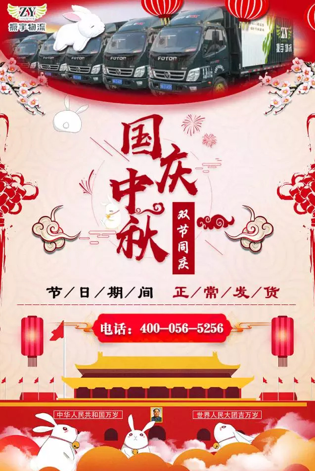 振宇物流各個(gè)網(wǎng)點(diǎn)正常營(yíng)業(yè),雙節(jié)期間班車(chē)彈性發(fā)車(chē),時(shí)效或順延一天,請(qǐng)您給下游客戶(hù)做好溝通解釋?zhuān)?nbsp;